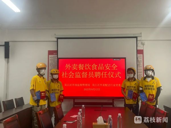 近日,10名外卖骑手作为吴江首批外卖餐饮食品安全社会监督员正式上岗,助力吴江积极建设江苏省食品安全示范城市。