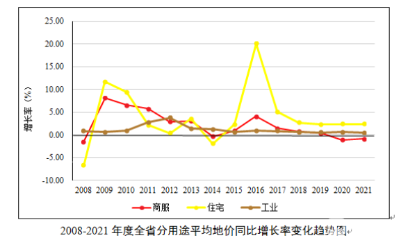 记者今天(8月16日)从省自然资源厅获悉,经对全省69个城市地价动态监测点的市场调查、监测、汇总、分析,《2021年度江苏省城市地价动态监测报告》已正式出炉。报告就2021年度江苏城市地价整体情况做了介绍。报告显示,2021年度全省商服平均地价同比增长率为-0.82%,较上年上升0.21个百分点;住宅平均地价同比增长率为2.43%,较上年上升0.05个百分点;工业平均地价同比增长率为0.53%,较上年放缓0.19个百分点。
