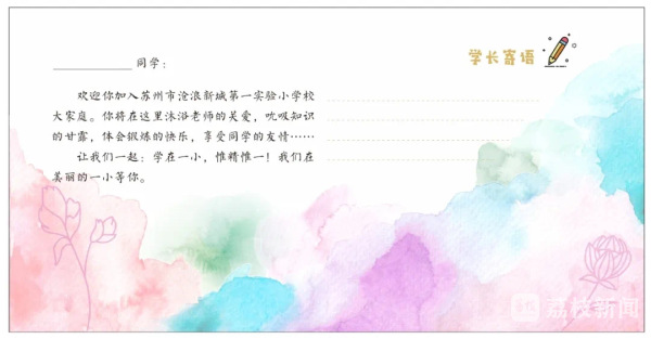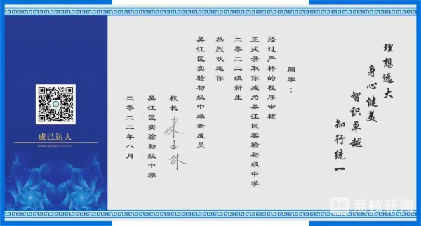 值得一提的是,学校每年的新生入学通知书,都是由胥江实验中学的学哥学姐们在暑期亲手书写的,既是对学弟学妹们的欢迎和祝福,也是爱的接力和传承。