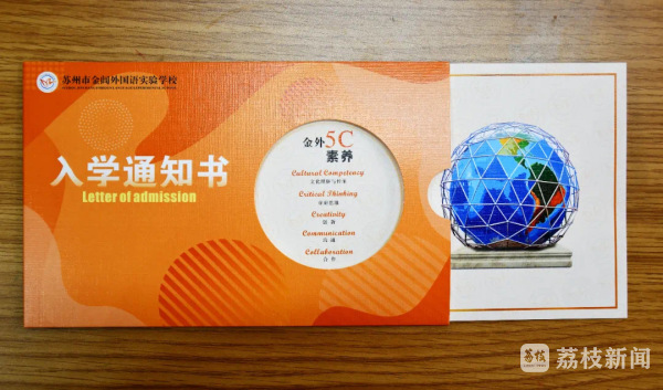 苏州市金阊外国语实验学校的通知书主页面呈现的地球元素是学校的标志性建筑,蕴含“兼容东西方文化理念,培养国际化现代意识”的办学理念,将引导学生认同自我和本民族文化,兼具尊重差异、理解多元、接纳吸取、合作共享的国际素养。