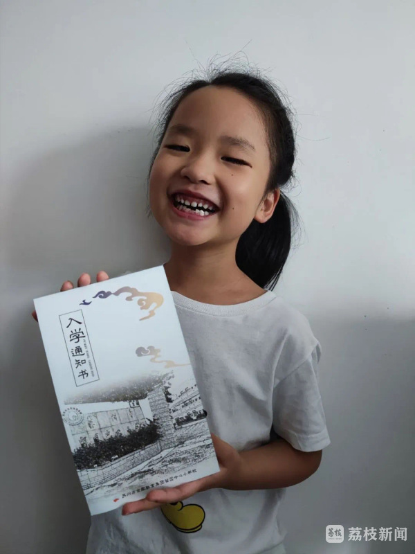 苏州市留园中心小学校的入学通知书,以古朴的色调彰显学校悠久的历史。通知书正面,学校大门的掠影,让每个新生进入校园前有一种回家的归属感。