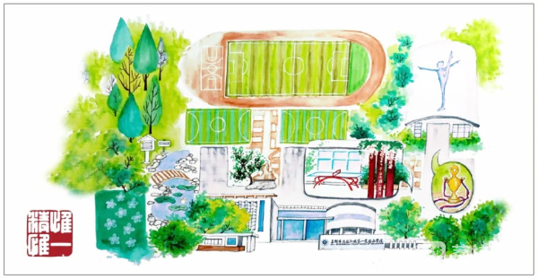 内页还有一幅由该校美术老师濮留贞倾心创作的清新有趣的手绘校园地图,希望在孩子们拿到通知书的第一时间就对校园有一个亲切的认识。