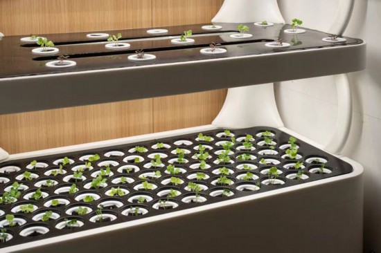 此外,建筑还融合了疗愈性景观。房屋景观以植物为主,促进人与自然的互动,其中包括绿色的墙面与屋面、家庭农业,以及具有江南园林色彩的灯光水池。