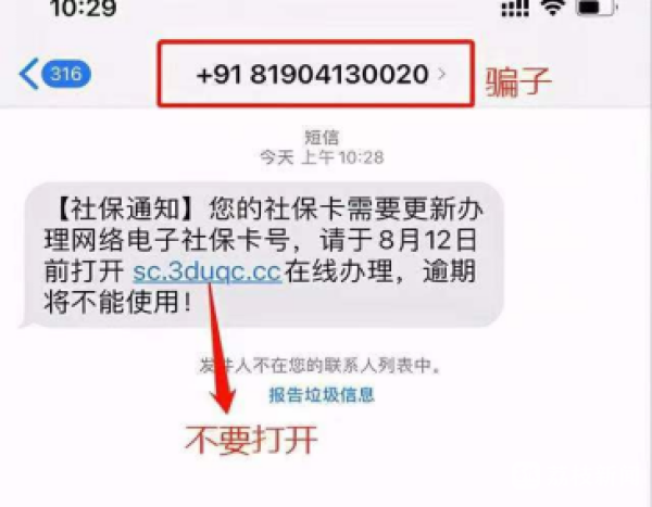 不要随便点击来历不明的链接。收到社保相关的短信,切记不能透露自己的账户信息及身份信息,更不能按其提示进行转账汇款等操作。