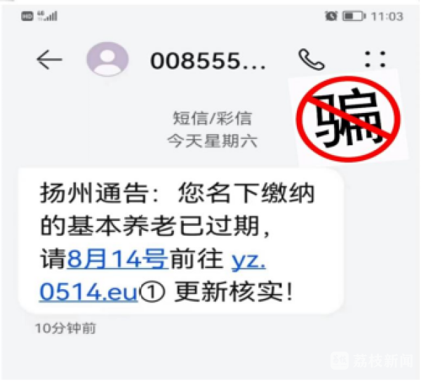 今天(8月17日),记者获悉,近日,扬州市12333接到许多市民来电反映收到社保诈骗短信,有不法分子冒用社保部门名义发短信给市民,称其名下缴纳的养老保险已过期,或者称其社保卡在异地有违规操作导致被冻结等异常情况,需要市民点击短信中的网址并填写个人相关信息。这种类型的都是诈骗短信千万别信,社保诈骗花样不断升级翻新,我们该如何识别防范呢?扬州人社为大家总结了几点,一起来看看吧!