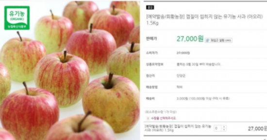 韩国电商平台所展示的正在逐渐变红的这种“青苹果” 图自韩媒