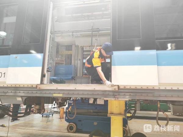 8月19日上午10点,户外热浪滚滚,在南京地铁小行架大修中心车间内,维修人员正在紧张地忙碌着。鲁东驰是一位车辆维修工,记者在现场看到,作为车门维修班的一员,鲁东驰在相对密闭的车厢里检查每一颗螺栓,调整车门每一个尺寸。