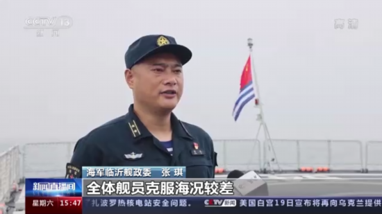 海军临沂舰政委 张琪:全体舰员克服海况较差、能见度不良等因素影响,沉着冷静、密切协调,舰炮对海射击中多发命中拖靶,展现良好的军人素养和过硬战斗作风。