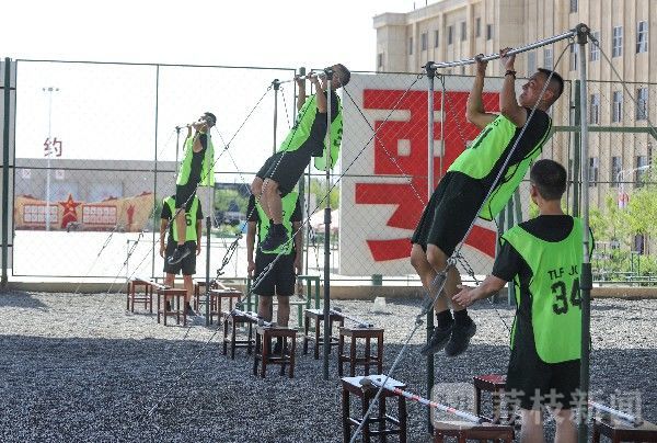 考核当天,首先进行的是基础体能课目。考核选手要连续完成3000米跑、单杠引体向上、30米X2蛇形跑、仰卧起坐、体型等基础体能课目。素有火洲之称的吐鲁番最高气温达到43℃,对所有参考人员都是一次挑战。