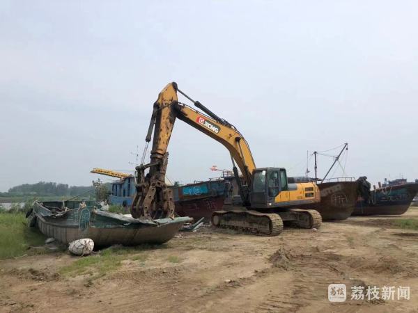 当日上午9时,在位于灌河南岸的响水县振兴船厂,随着拆解开始的声音响起,大型拆解设备对放置在现场的涉渔“三无”船舶进行拆解。共拆解涉渔“三无”船舶24艘,其中钢质船10艘、快艇12艘、浮子筏2艘。