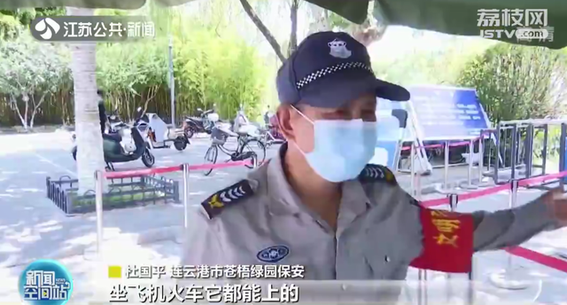 连云港市苍梧绿园保安:“它这个是属于导盲犬,国家允许的,坐飞机火车它都能上的。”