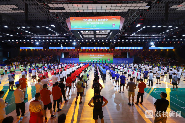 8月21日上午,由江苏省总工会主办,无锡市人民政府承办,无锡市总工会协办的江苏省第二十届运动会职工部羽毛球比赛开幕式在无锡市太湖国际博览中心举行。