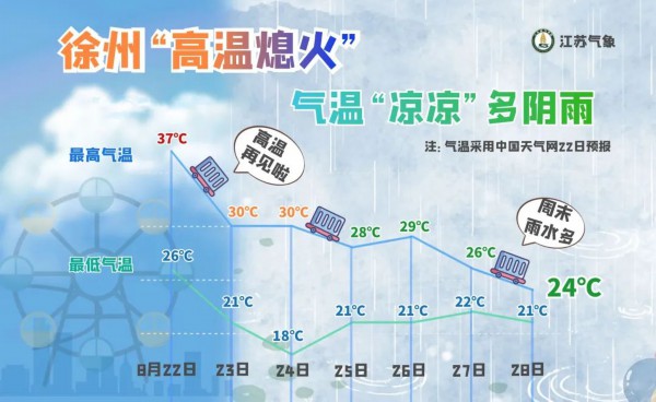 图为徐州8月22日至8月28日气温预测图