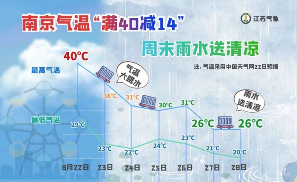 图为南京8月22日至8月28日气温预测图