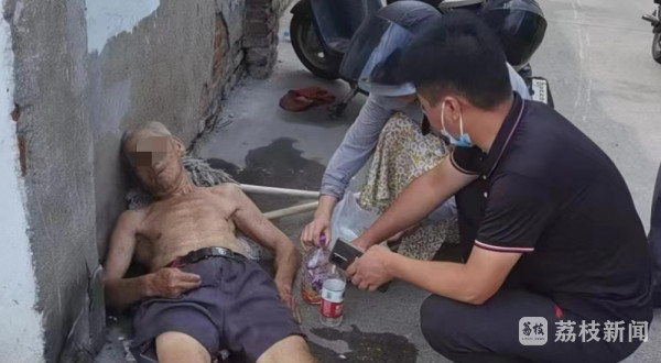 事发地附近一家超市店主说,这名女性操着本地口音,40多岁,戴着一个黑色头盔,购买了一些物品后,三步并成两步跑到老人跟前,蹲下身子开始喂老人喝水,并用冰袋和湿纸巾帮老人擦拭身体,通过物理降温缓解对方的中暑症状。“这名女同志,一直守在老人身边,直到救护车赶到。”这名店主竖起大拇指说道。