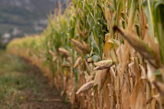 8月16日,在斯洛文尼亚戈里什卡区新戈里察市维帕瓦镇的维帕瓦河谷,玉米因干旱枯萎。新华社发(泽利科·斯特凡尼奇 摄)