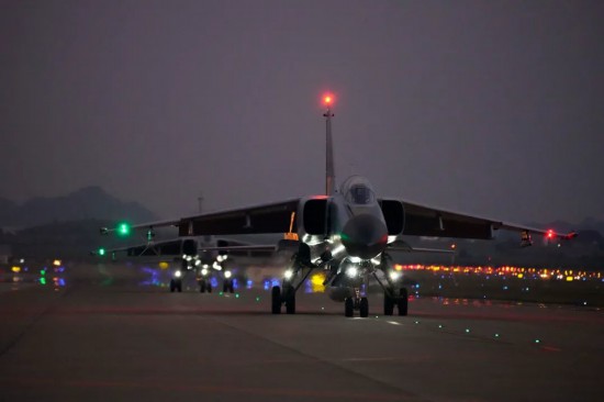 夜幕降临,经过一下午的技术复盘总结,又一批战机拖着尾焰呼啸升空。