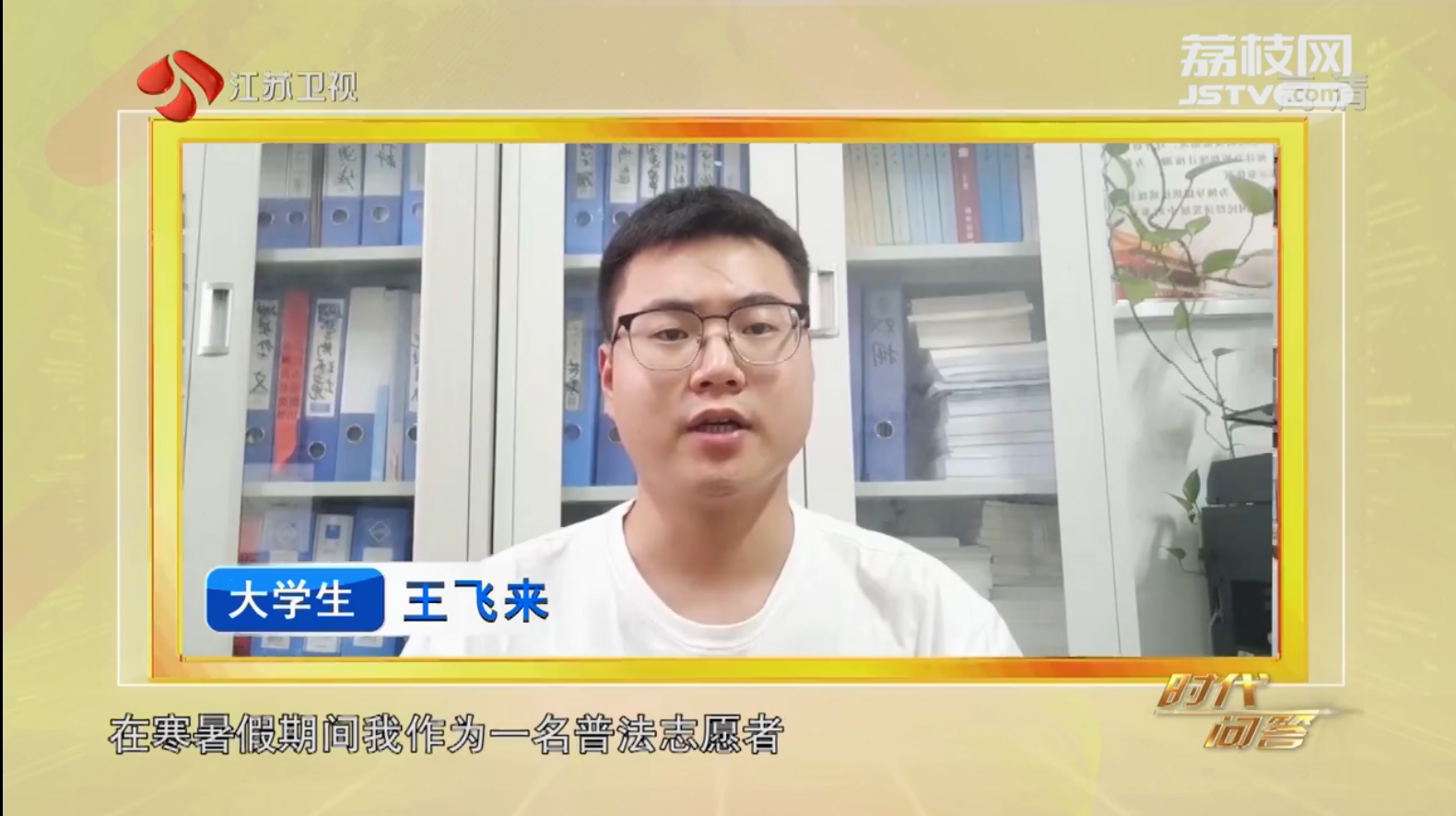 大学生 王飞来:我是一名法学专业的学生,在寒暑假期间我作为一名普法志愿者加入普法宣传小队,跟随法律工作者走村进户、送法下乡,免费为村民们发放宣传资料和法律书籍,不仅提高了村民们的遵法、学法、守法、用法的意识,对我来说也是一件非常有意义的事情。