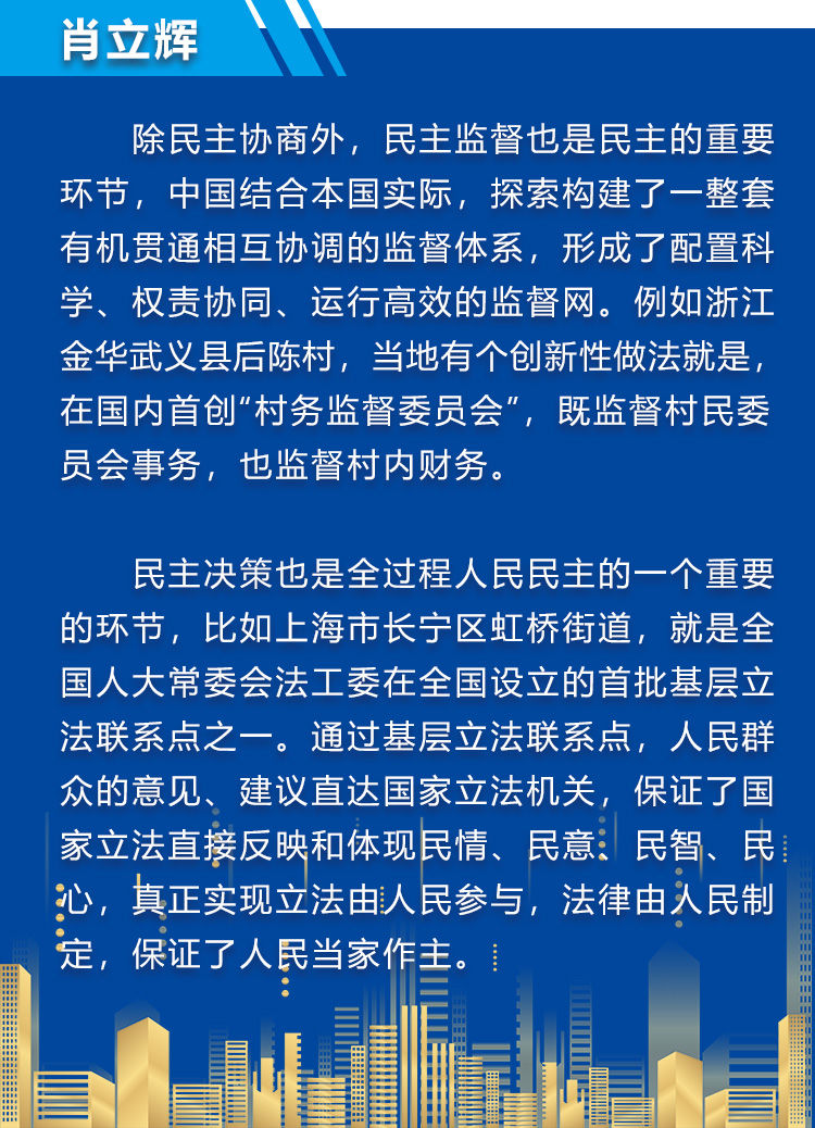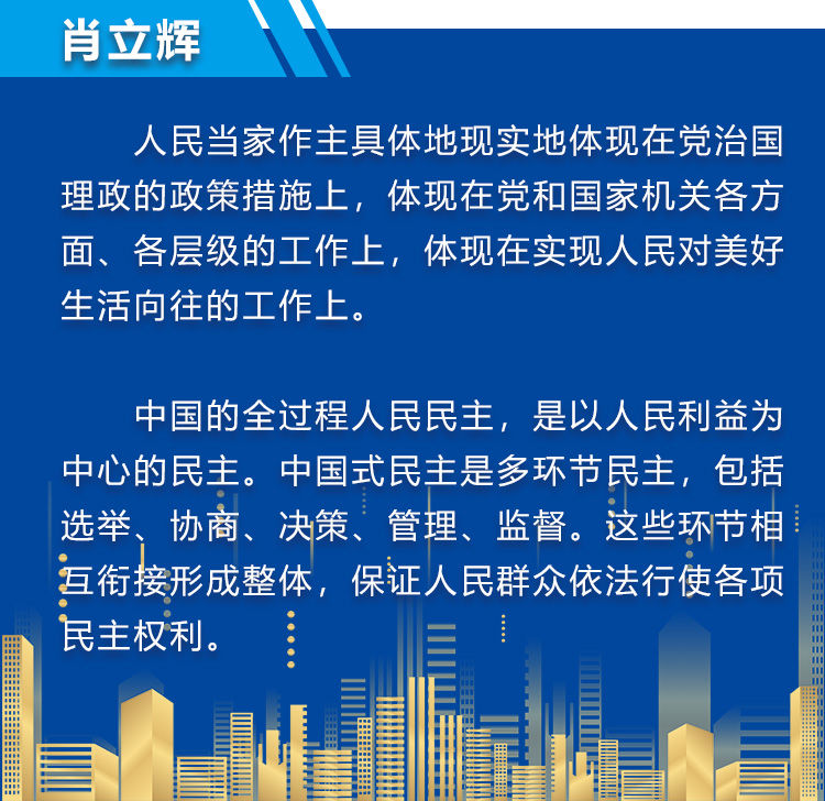 肖立辉:不管是全过程人民民主,还是全面依法治国,工作的重点还是围绕着以人民为中心,以人民的获得感为标准、为评价,有序地推进民主和法治进程。