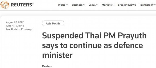 据路透社报道,被暂停泰国总理职务的巴育当地时间25日在社交媒体上表示,他将继续担任泰国国防部长职务。