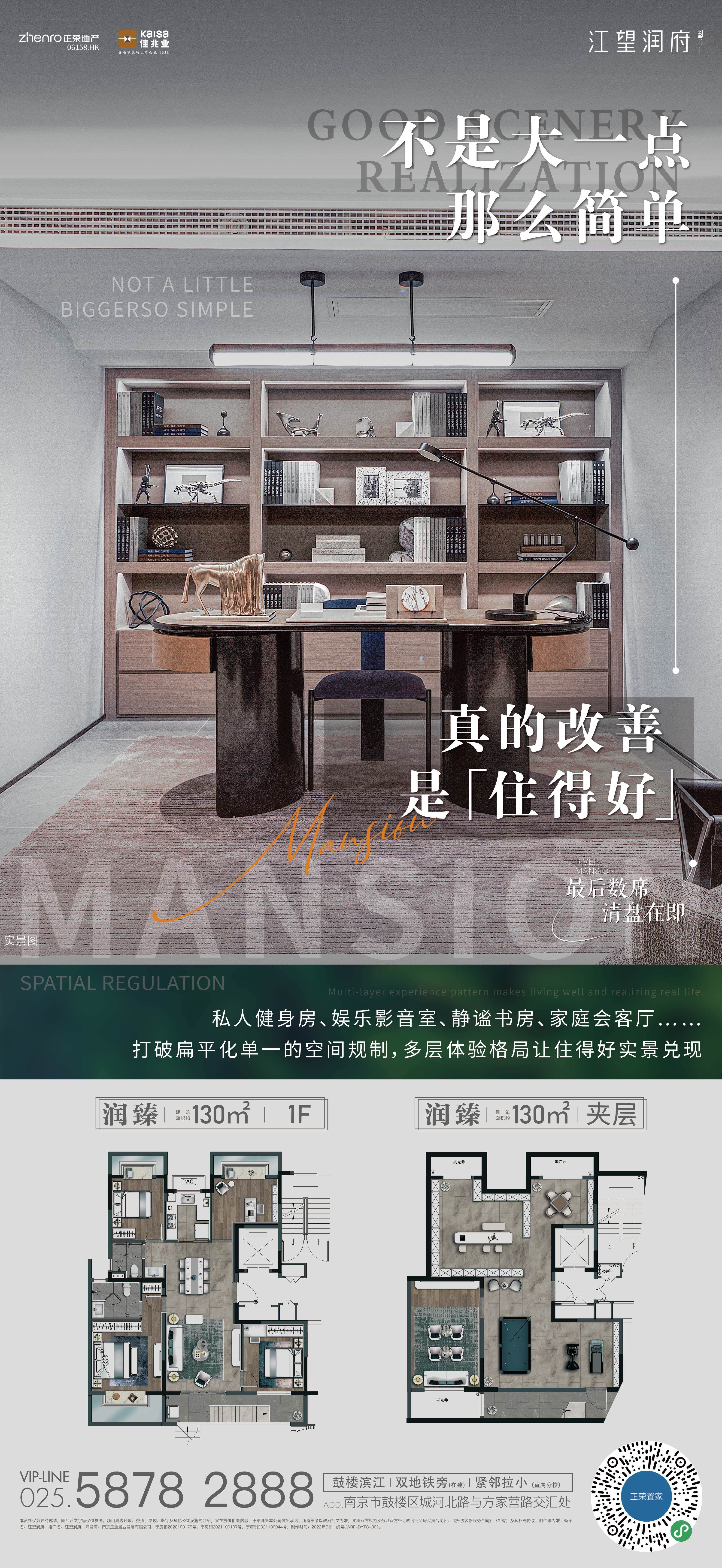 江润望府约130㎡精奢底跃户型,以恰到好处的空间布局,在提高利用率的同时让空间真正服务生活。严格把控每一寸细节,用人性化的设计还原美好的居住体验。以宽阔视野打开人生格局,得以安放生活的从容惬意,捕获全城菁英人士的关注与热捧。