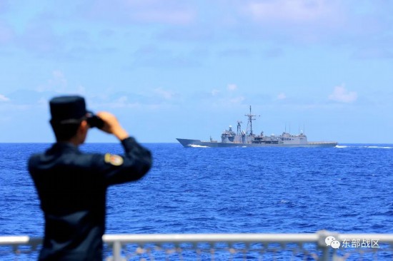 东部战区在台岛周边海空域组织多军兵种联合战备警巡和实战化演练