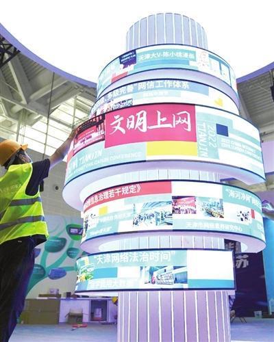 昨日,记者来到2022年中国网络文明大会的一大创新设计现场──位于国家会展中心(天津)的“新时代中国网络文明建设成果展”,实地探馆探展,提前开启一场感受新时代中国网络文明建设丰硕成果的视听盛宴。