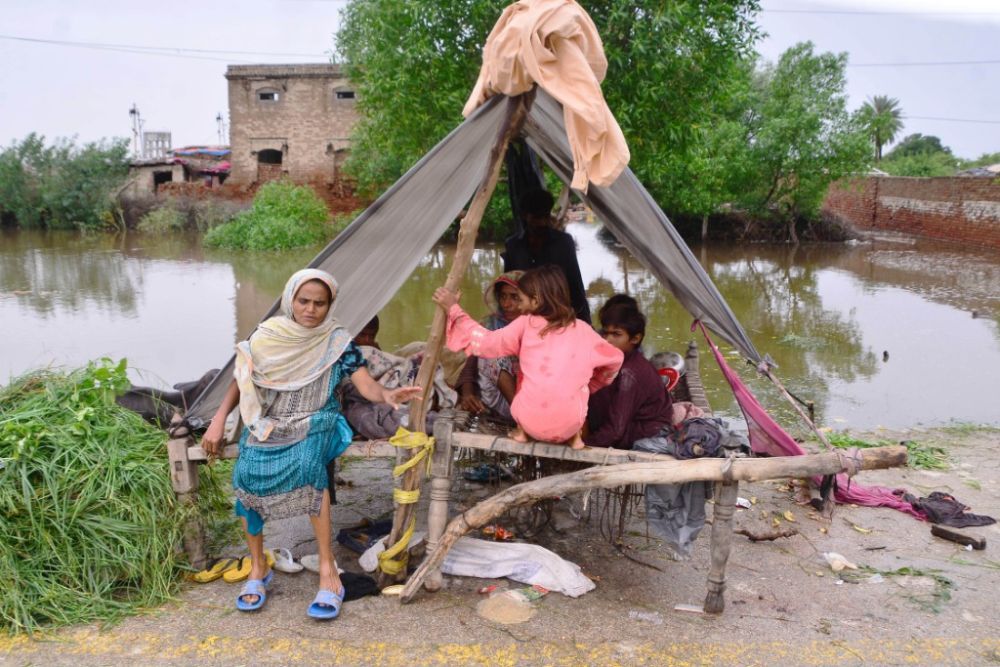 这是8月25日在巴基斯坦信德省登多阿拉赫亚尔拍摄的受灾民众。新华社发