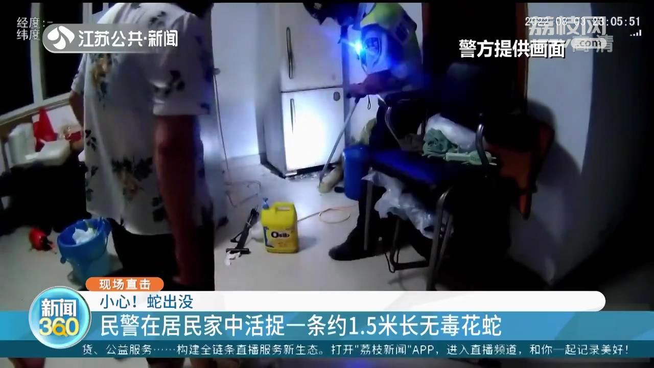 经过仔细搜寻,民警终于在角落里发现了蛇的踪迹。苏州市公安局工业园区分局唯亭派出所民警 陶妍溪说,那条蛇大约身长是1.5米,是一条无毒的花蛇,但是它会在家里面乱窜。