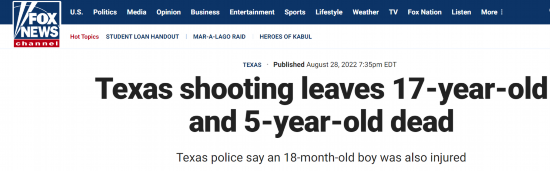 福克斯新闻:得克萨斯州枪击事件造成17岁少年和5岁儿童身亡