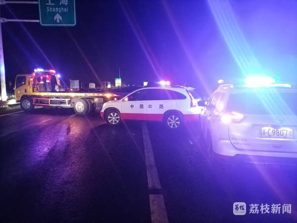 事故发生后,宁沪支队第二大队执法人员、高速交警、养排人员均在第一时间到过现场,快速实施救援工作。一方面联系安排其他货车前来接运牛群,另一方面执法人员、养排施救人员并排推进形成“人墙”,先是将牛群集中赶至三、四车道,然后再安排执法车辆形成“车墙”堵住车道两端,封闭限制牛群肆意行走。