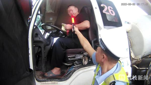 今天(8月30日)早晨8时许,徐州市公安局交警支队鼓楼大队五中队的民警在三环北路执勤时,发现一辆水泥搅拌车有加装射灯和号牌不清晰的违法行为,执勤民警示意驾驶员曹某靠边停车接受检查,结果发现驾驶员竟一身酒气。