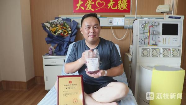 今天(8月 30日),在南京明基医院血液科的血液采集室里,来自扬州仪征市跃进村村民委员会37岁的村会计方斐正在接受造血干细胞采集。历经305分钟,共采集339毫升造血干细胞混悬液。这些造血干细胞将被迅速运往外地,救助一名患者。