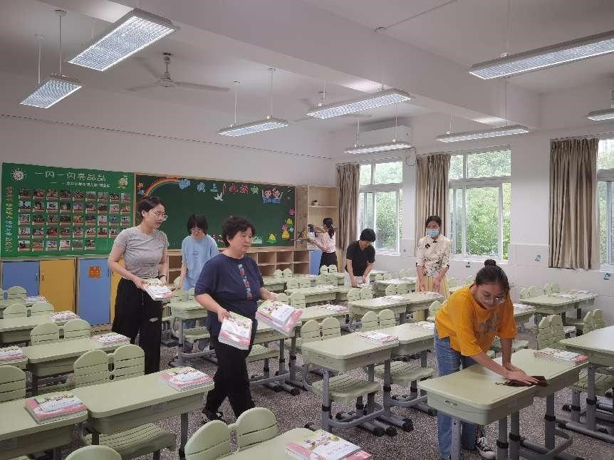 为了让新生报到工作顺利有序进行,校长室和一年级组的全体老师召开了多次筹备会议。疫情防控、报到流程、教室布置、卫生打扫等,老师们不放过任何一个细节。