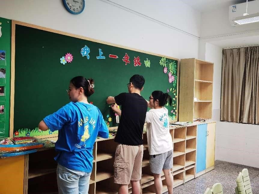 宽敞明亮的教室、干净整齐的桌椅、崭新的书本、精美的黑板报……每一处都透着老师们对新一届乐活娃的爱。