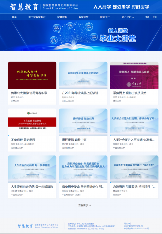 毕业骊歌起,师长有寄语,叮咛道不完。栏目集纳了包括北大、清华在内的众多高校,在毕业季开展的有特色的毕业典礼、毕业教育活动,以及大学党委书记、校长所作的精彩毕业演讲,发挥典礼育人作用,帮助广大毕业生树立理想信念。