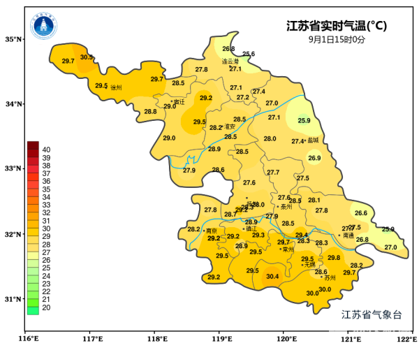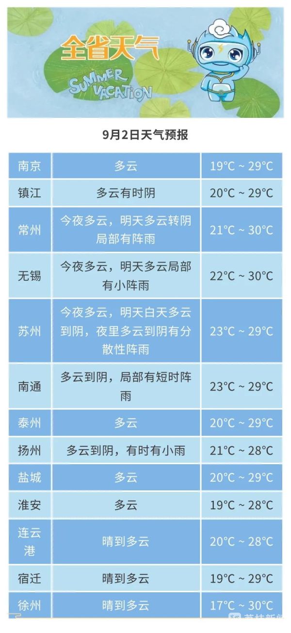 据江苏省气象台消息,8月的最后几天以凉爽结尾。昨日沿江苏南地区创了近期最高气温的新低,各城市中南京最高气温只有22℃,全省最低。