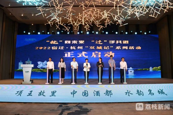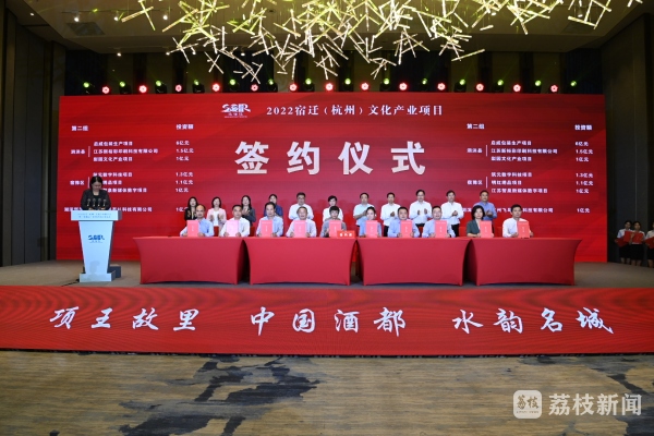 8月31日下午, 2022宿迁(杭州)文化产业推介会暨“双城记”系列活动启动仪式在杭举办,近百位客商代表、媒体代表、文旅企业代表共叙友谊、共商合作、共谋发展。会上共签约19个文化产业项目、协议总投资54.8亿元,并正式启动了杭州宿迁“双城记”系列活动。