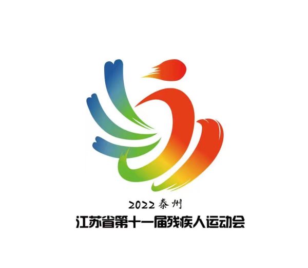 红色头部象征熊熊燃烧的体育圣火,表现残疾人运动员超越自我,传递更快、更高、更强的体育精神。尾部类似梅花花瓣和凤凰羽毛的造型,融入泰州地域文化,突出泰州市花梅花,代表凤凰城对省残运会的美好祝愿,同时象征残疾人运动员以坚强的意志作为翅膀,在赛场上放飞青春梦想。