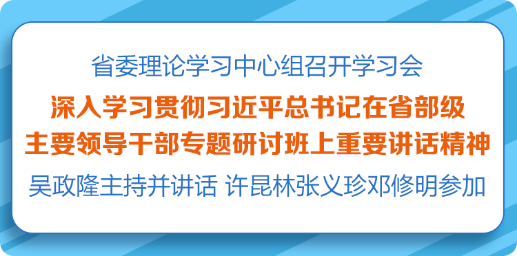 荔枝新闻讯 9月2日,省委理论学习中心组召开学习会深入学习贯彻习近平总书记在省部级主要领导干部专题研讨班上重要讲话精神。省委书记吴政隆主持并讲话。他强调,要坚持以习近平新时代中国特色社会主义思想为指导,切实用习近平总书记重要讲话精神统一思想、统一意志、统一行动,深刻领悟“两个确立”的决定性意义,增强“四个意识”、坚定“四个自信”、做到“两个维护”,始终同人民群众想在一起、干在一起,全面落实“疫情要防住、经济要稳住、发展要安全”的重大要求,完整准确全面贯彻新发展理念,加快服务构建新发展格局,大力推动高质量发展,敢为善为、勇挑大梁,更好“扛起新使命、谱写新篇章”,以实际行动迎接党的二十大胜利召开。省委副书记、省长许昆林,省政协主席张义珍,省委副书记、省委政法委书记邓修明参加学习。