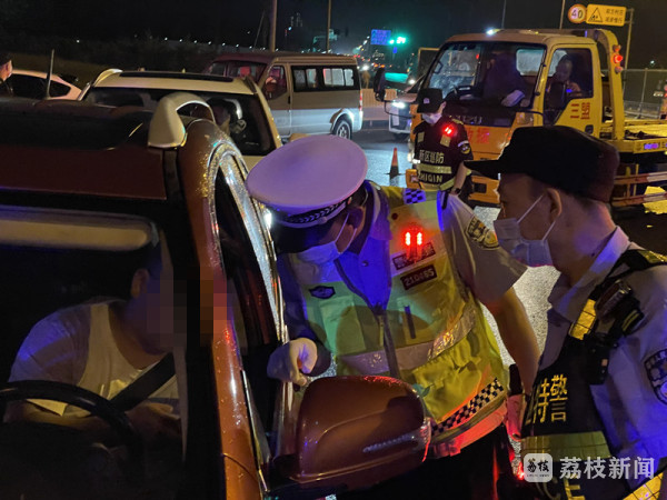 按照“百日行动”部署,南京市公安局江北新区分局交警支队第一大队全天候开展路面巡逻巡查行动,严查车辆重点交通违法行为。8月27日晚,分局交警支队、特巡警支队联合设卡林场地铁站附近开展夜间整治行动。22时许,一辆黑色小车在卡点接受检查时,民警发现车厢内散发酒气,面对询问副驾男子陈某表示是自己喝了酒,经吹气式酒精检测证实驾驶人吴某确未喝酒,但其神色慌张、眼神躲闪引起了民警的注意。