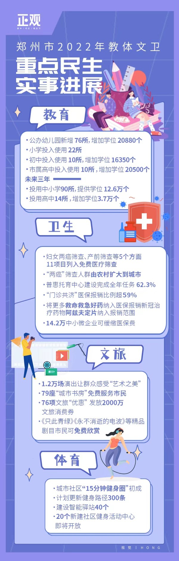 今年,郑州中小学以及幼儿园的学位增加了多少?群众看病是否更方便、报销得更多?老百姓“抢”了多少文旅优惠券?出门有健身跑步的地方吗?