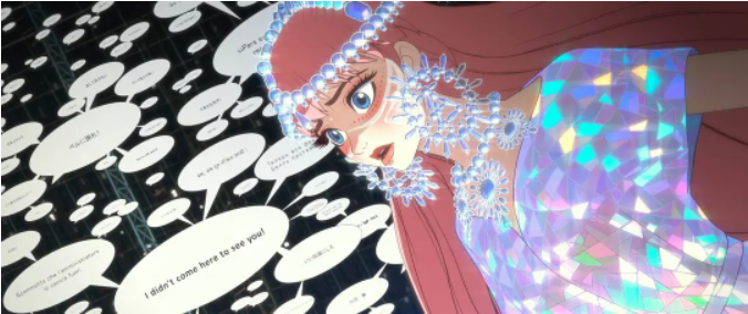整部影片淋漓尽致地展现了日式动画的唯美细腻,配乐也非常绝。声优中村佳穗为女主配音,进入元宇宙世界后的歌曲也是其亲自演唱。虚拟世界U的塑造天马行空,线条交织穿插,色彩饱满,画面瑰丽。