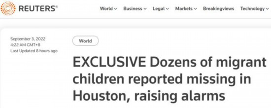 “休斯敦数十名移民儿童据报失踪,拉响警报”,路透社2日以此为题报道称,根据美国政府官员和路透社查阅的相关电子邮件,在得克萨斯州休斯敦警方对2021年以来报告的数十名移民儿童失踪表示关切后,美联邦和地方官员正在寻找数十名无人陪伴的移民儿童。