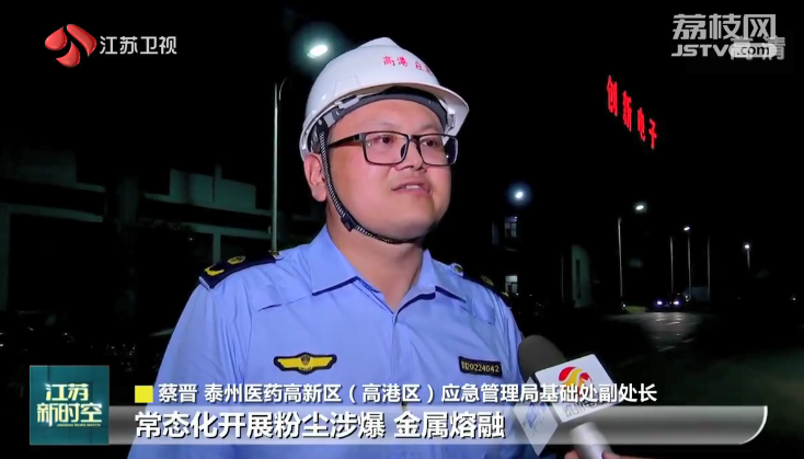 泰州医药高新区(高港区)应急管理局基础处副处长蔡晋说:“根据重点行业与企业的安全生产特点,常态化开展粉尘涉爆、金属熔融、危化品使用、有限空间作业专项整治行动,督促企业做好隐患排查、风险管控,切实落实好企业的安全生产主体责任。”