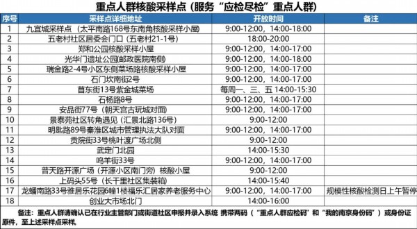1、请广大居民主动配合,应检尽检、不漏一户、不漏一人,按照相关街道统一安排,分时段有序前往就近采样点进行核酸采样。