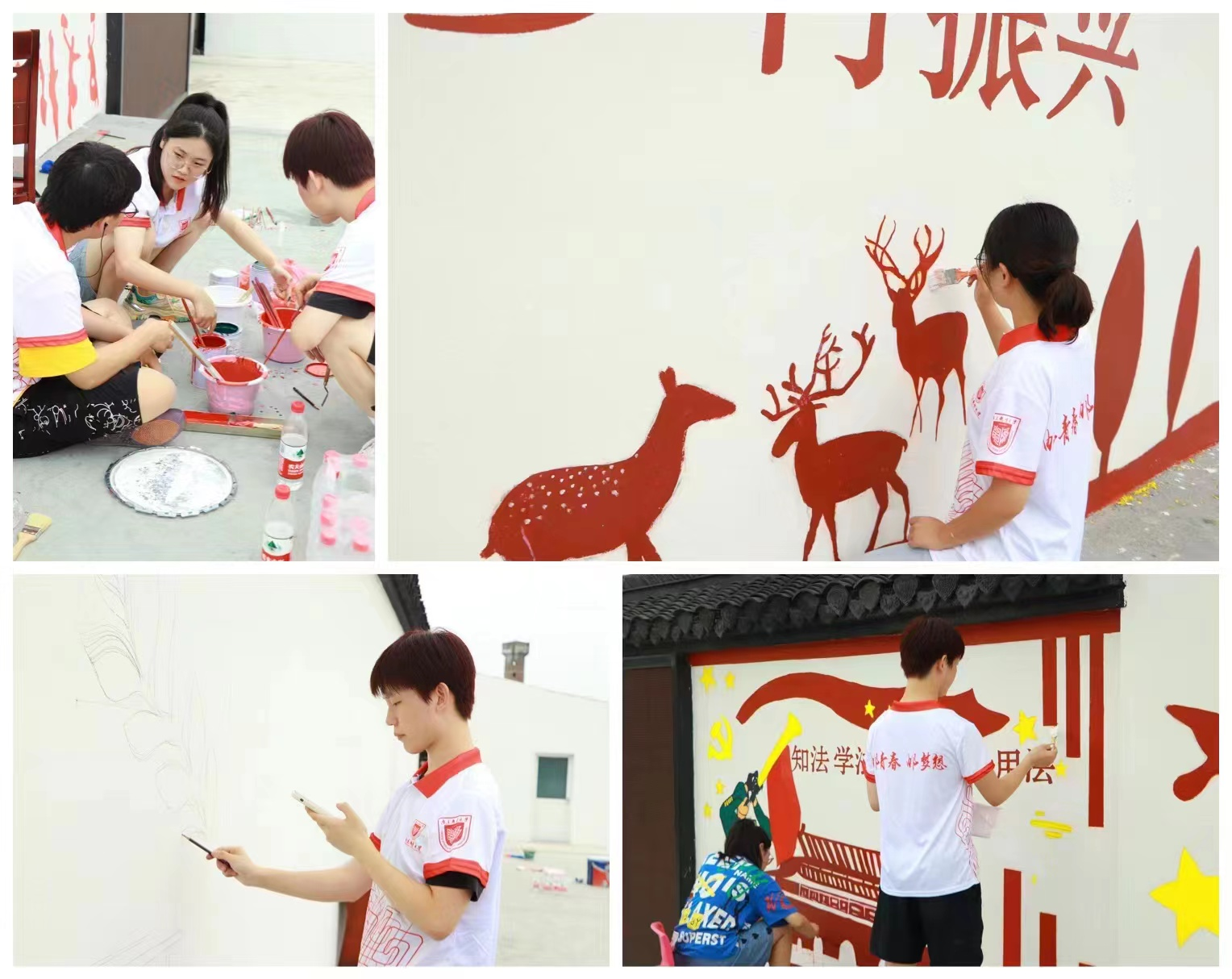 “农村文化墙不仅是农村的一道风景,更是传播文化的重要载体。”在江苏南京八卦洲七里村,孙羽硕同学带领着团队成员一起描线、配色、绘画,不一会儿,一面面单调的白墙便勾勒出美丽的农村环境与山水图景。