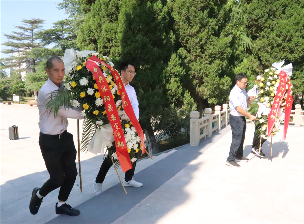 沭阳县委宣传部、县发改局、县科技局、县医疗保障局等单位走进沭阳县烈士陵园,开展“抗战胜利纪念日”主题宣传教育活动。南湖街道、青伊湖镇、扎下镇等乡镇组织党员群众开展“抗战胜利纪念日”主题宣传教育活动。