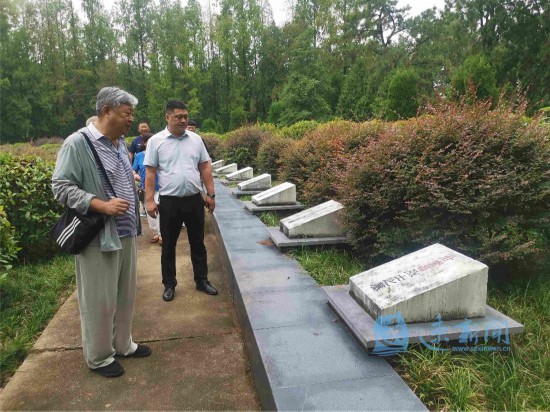当天上午,从安徽省宿州市特意赶来的花纯征,激动地握住了等候在烈士陵园门口的马春到的手。这一天,是中国人民抗日战争暨世界反法西斯战争胜利77周年纪念日,也让这场见面变得尤为特殊。他们来到在朱家岗战斗中牺牲的73位烈士墓穴前,追忆往昔、缅怀先烈。