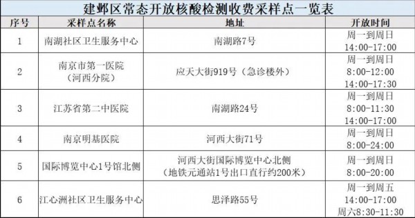 3. 建邺区常态开放核酸检测收费采样点一览表